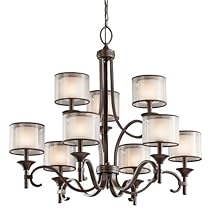 Top deals Kichler Lighting 42382MIZ Lacey 9-Light Chandelier, Mission Bronze with Cased Opal Inner Diffusers and Light Umber Translucent Outer Shades It starts witha rich finish and bold, unadorned rounded-arm styling It finishes with avant-garde double shades made of decorative meshed screens and opal inner glass Finish:Mission Bronze, Shade:Light Umber Translucent Organza, Glass:Satin Etched Cased Opal, Light